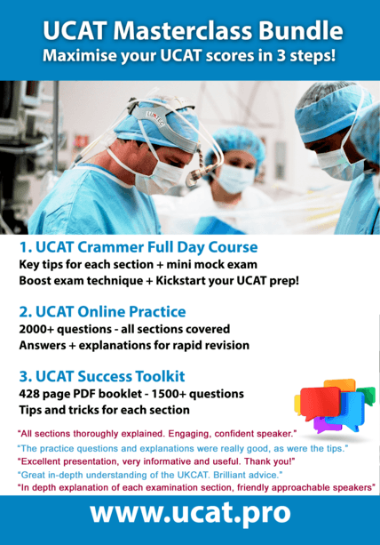 Interactive full day course covering how to approach UCAT preparation, high challenge questions to improve exam technique, mini mock exams for each section + bonus medical careers session.